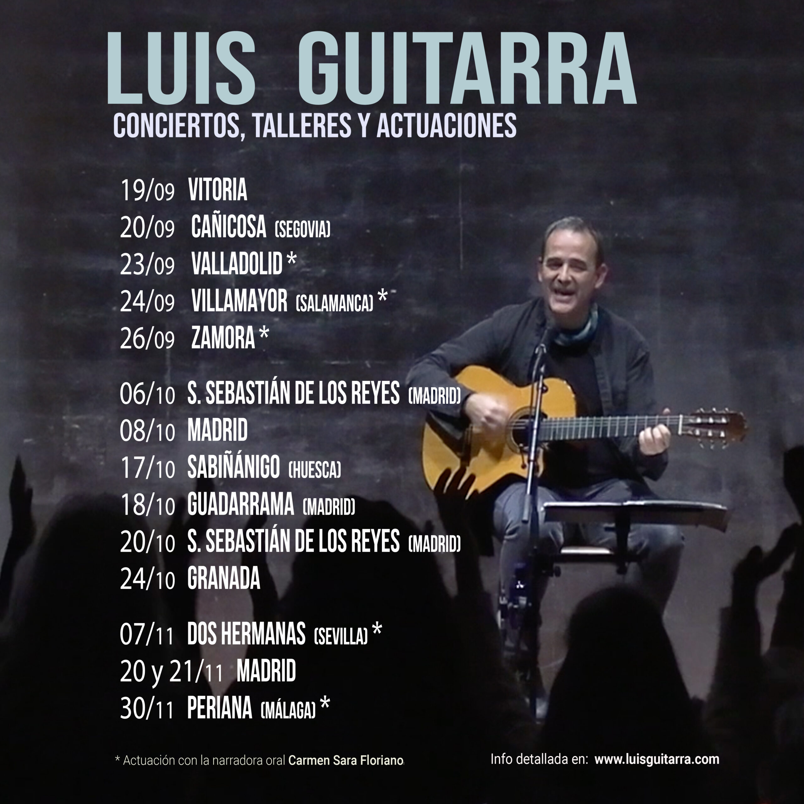 Uno de los cantautores más comprometidos del panorama musical español es sin duda Luis Guitarra. Sus letras son pura poesía social, y fue el pionero de un sistema alternativo de distribución denominado “El precio lo pones tú” que aúna la música y la solidaridad y posibilita la financiación y realización de proyectos de desarrollo humano.